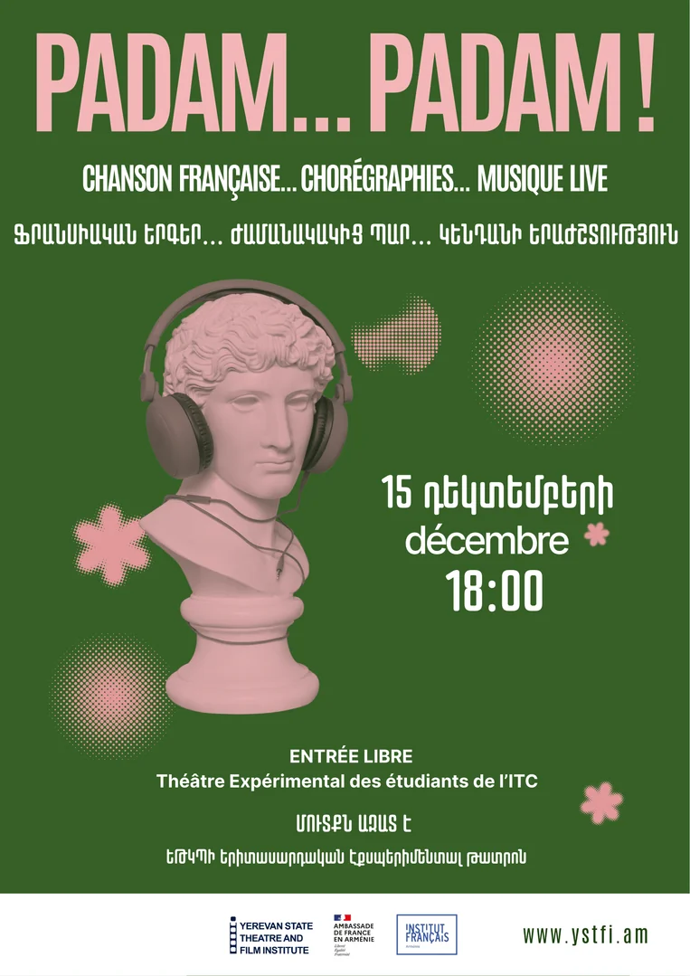 Ֆրանսիական երգեր... Ժամանակակից պար... Կենդանի երաժշտությունԴեկտեմբերի 15-ին՝ ժամը 18:00-ին, Երիտասարդական էքսպերիմենտալ թատրոնում կվայելենք ԵԹԿՊԻ-ի ուսանողների երաժշտական ու պարային...